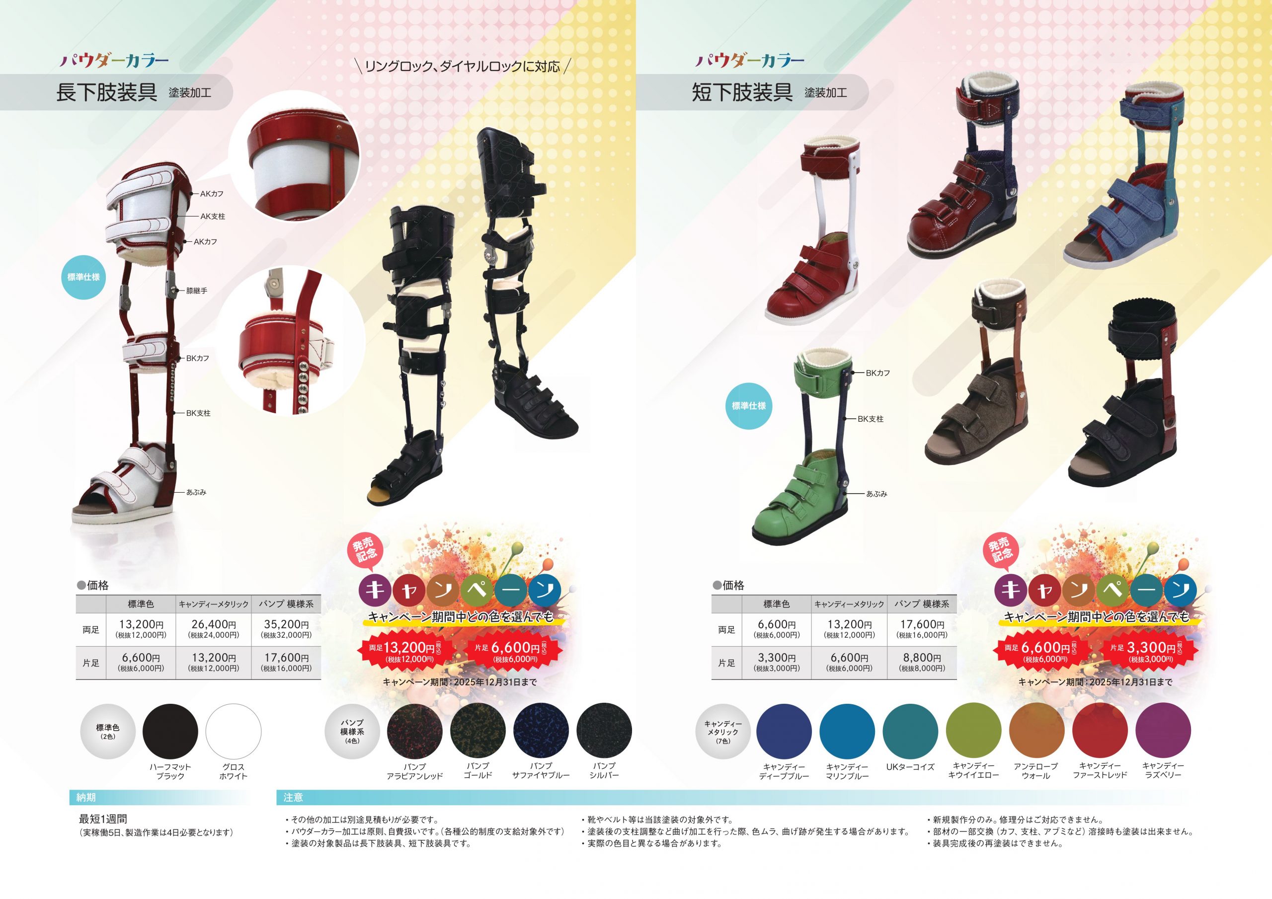 支柱付き装具の支柱部分に新しく塗装ができるようになりました