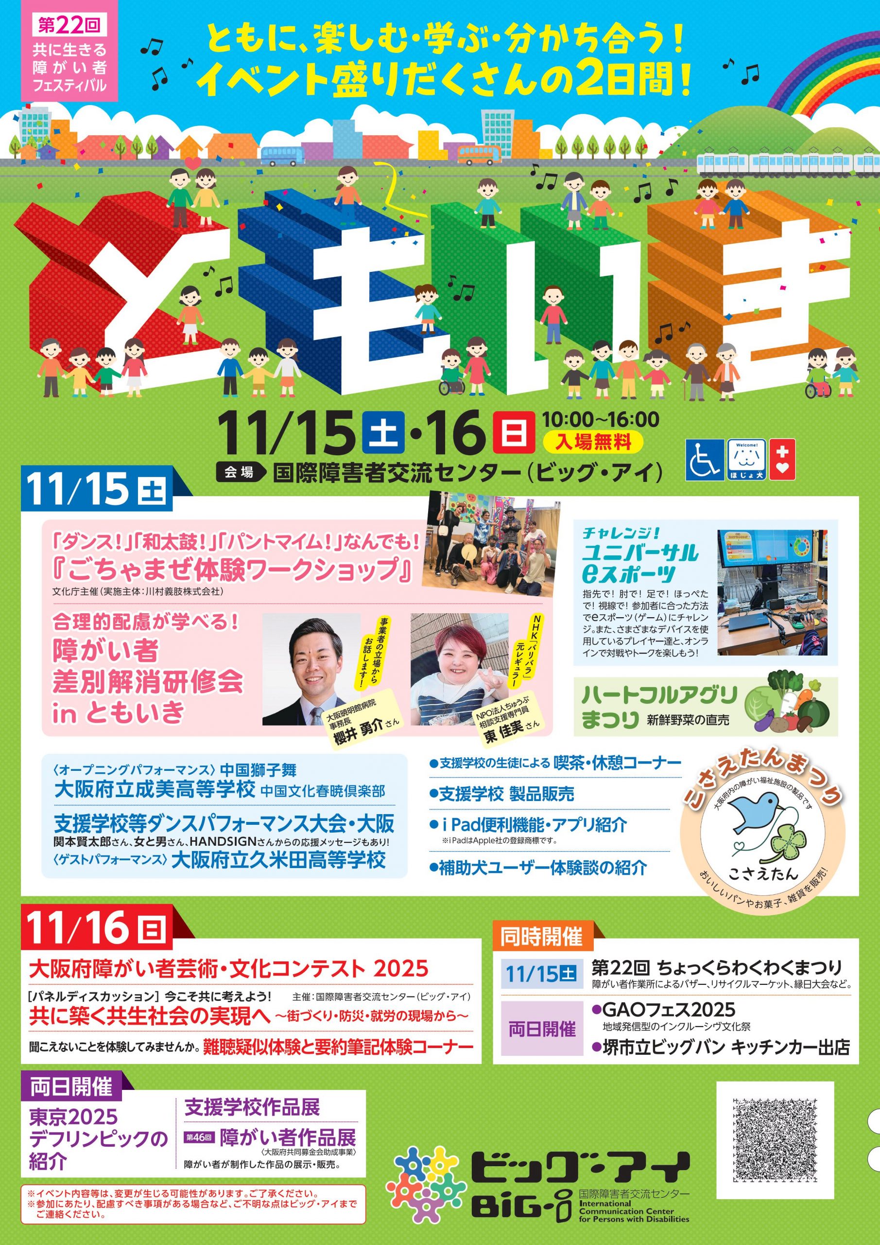 大阪府主催の「共に生きる障がい者フェスティバル(ともいき)」イベント内で、「ごちゃまぜ体験ワークショップ」を実施します。