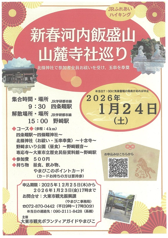 2026年が良い年になることを願って、歩き初めは大東市からスタートはどうでしょうか?